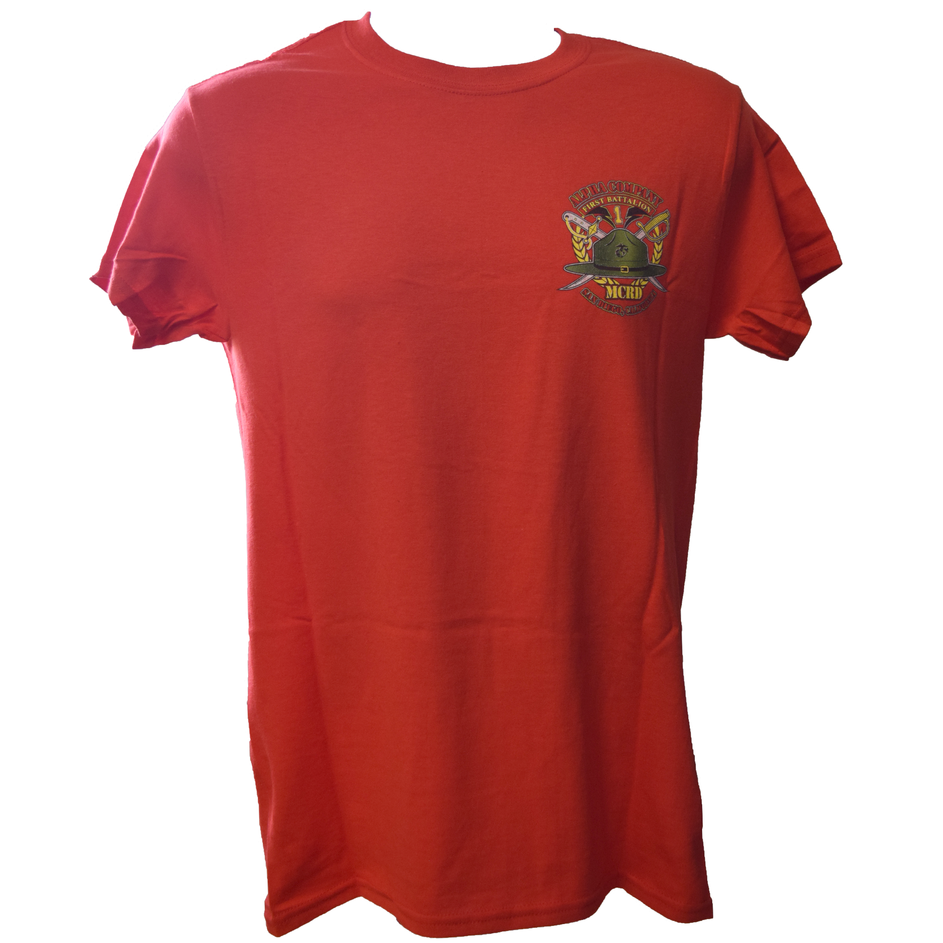 Show off your pride for your Alpha company Marine with this exclusive 1st battalion T-shirt! The back of the shirt features the 1st battalion crest with "Alpha Company" written above the crest. The same design is repeated on the front of the shirt in a smaller size. Order online here before graduation! This shirt is a great gift for USMC family members and new Marines!