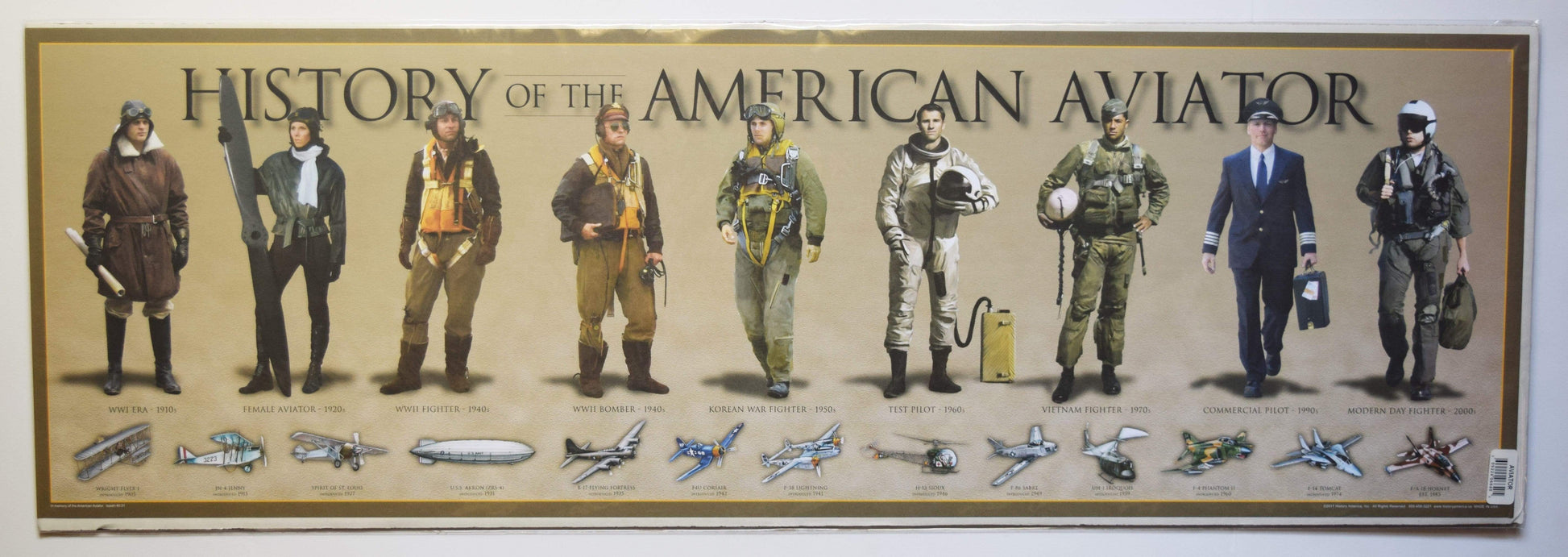 This colorful poster features American aviators throughout history. Each poster is printed with fade-resistant ink on 80-lb. acid-free paper with a matte finish.