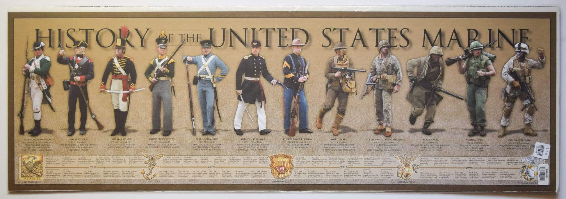 This colorful poster details the history of the United States Marines. Each poster is printed with fade-resistant ink on 80-lb. acid-free paper with a matte finish.