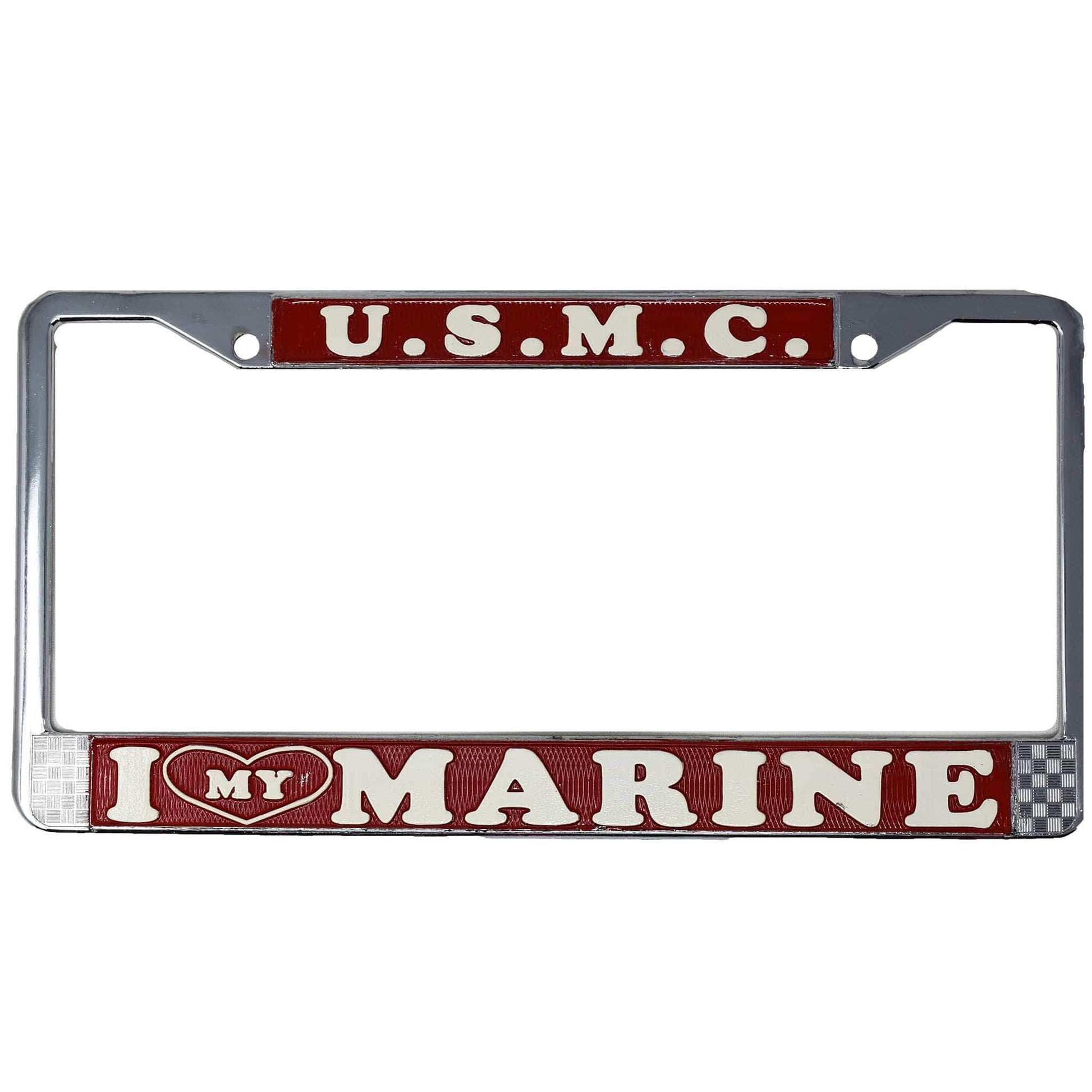Show your love for your Marine! Each license plate features a red and white design and is easy to install on any vehicle. Get yours online here!