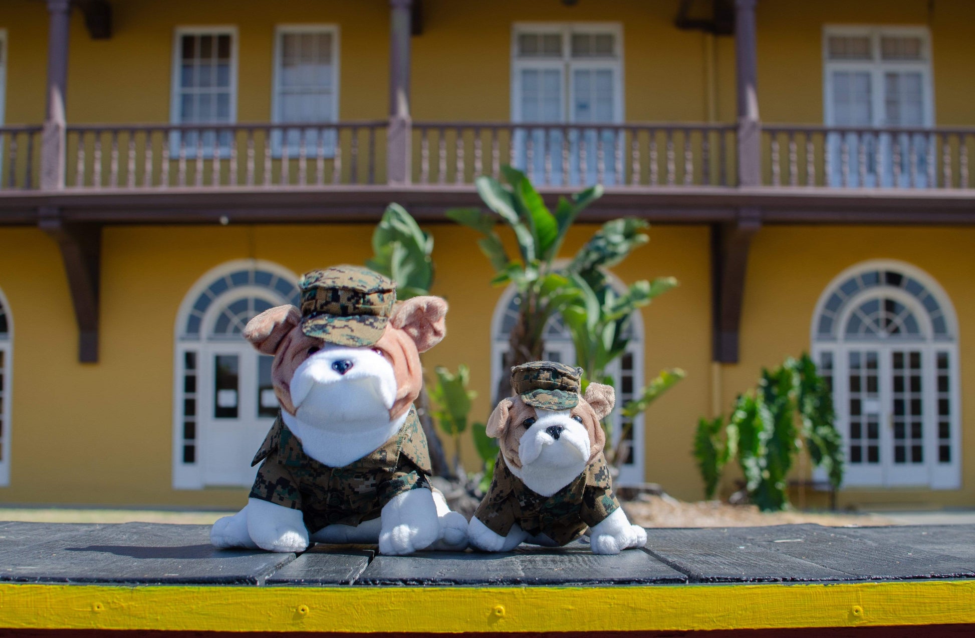 This adorable bulldog in is perfect for any little one or future Marine in training! Purchase this 9 inch mini bulldog or a larger 14 inch bulldog in camo/dress blues.