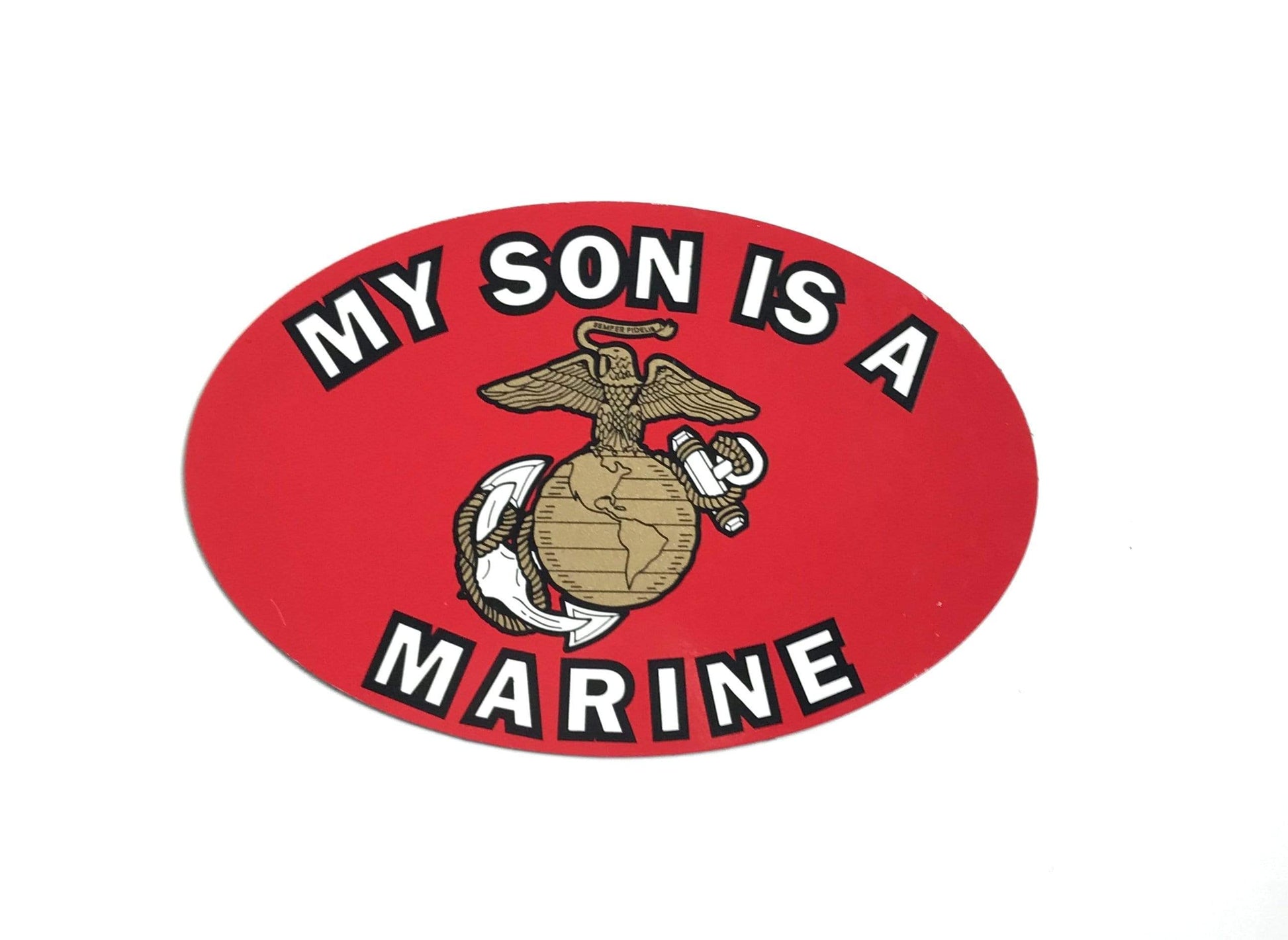 This magnet is red - says My Son Is A Marine with an EGA in the middle